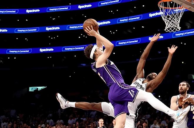 比赛一开始,湖人展现了令人窒息的进攻火力。詹姆斯、东契奇、里夫斯三大持球核心轮番开火,传切配合行云流水,艾顿和八村塁也皆有贡献,湖人打出过去几场的恐怖进攻效率。然而,防守端的隐患几乎同步暴露——湖人对马刺外线的压迫性严重不足,给了福克斯和卡斯尔大把空位出手机会。首节中段,替补登场的凯尔登约翰逊突然爆发,连中3记三分独得13分,马刺一波流直接反超9分。湖人全队瞬间懵了。